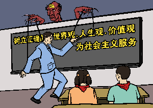 现在的语文课本加入了很多有时代气息的作品,但我们必须看到,语文课仍然承担着相当重要的灌输党文化的功能。这是因为,第一,党魁文章仍然占据一定篇幅。第二,与众多文学名篇并置在一起,党文化篇目也自然获得了文学名篇的地位,也就是被“经典化”了。当学生用这些党文化篇目学习文法和修辞的时候,已经把内容当成自然、当然、甚至必然的东西,毫无戒备地吸收了。第三,目前应试教育中的技术至上化倾向把学生的注意力吸引到大量无谓的细节,对文章内容既无兴趣又无能力探究。
