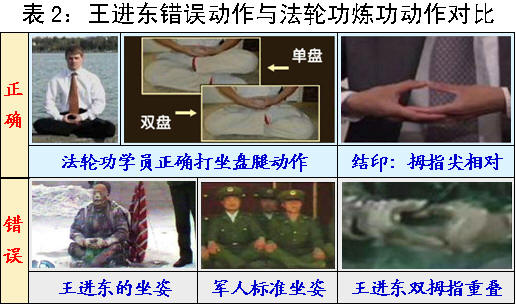而且这个所谓的1996年开始修炼的“法轮功老学员”,却连最基本的法轮功炼功动作“双盘”“双手结印”都不会做!(见下页表2)