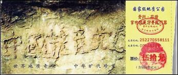 (“藏字石”门票,在网上搜索“藏字石”即可查到)