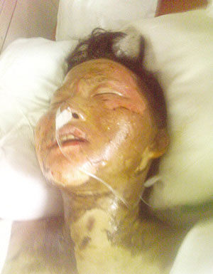 7、“自焚”中严重烧伤的12岁的小女孩刘思影气管割开后四天就能清脆地说话和唱歌,完全不合医学常理,一些西方医学专家不禁惊呼中国创造了“医学奇迹”;