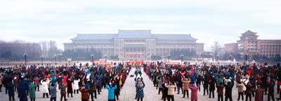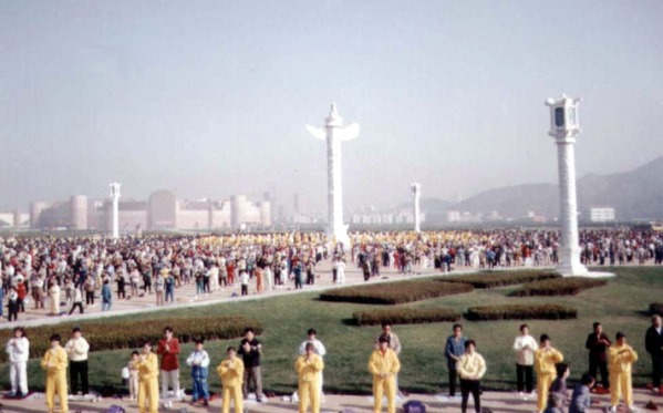 1999年5月双城市法轮功学员在东门广场集体炼功