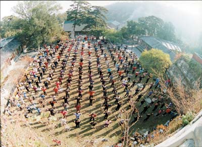 1996年北京国际法会的各国法轮功学员在戒台寺晨炼